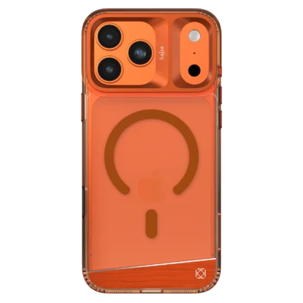 The Kajsa Trans-Shield Case for iPhone 17 Pro Max (MagSafe Compatible) Orange offers a premium aluminium back, excellent protection, slim design, and a stylish modern look.