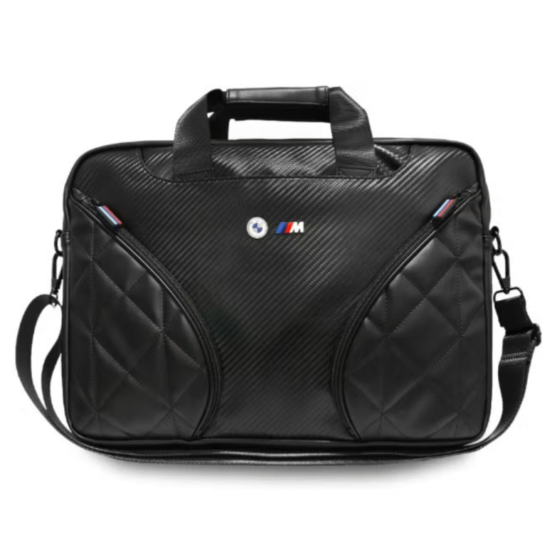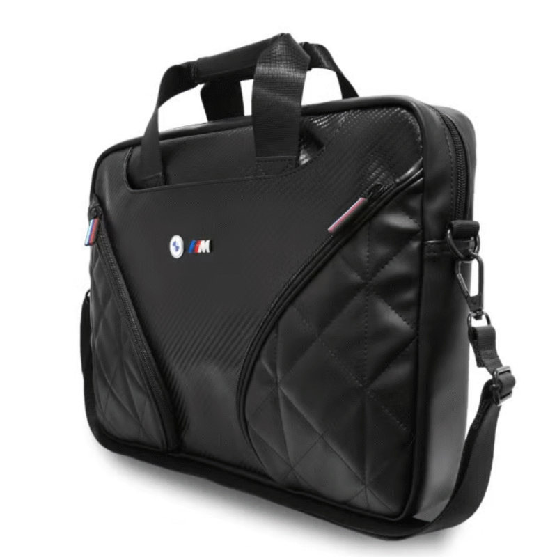 PU Leather M Collection Computer Bag 15” with Metal Logo – Black