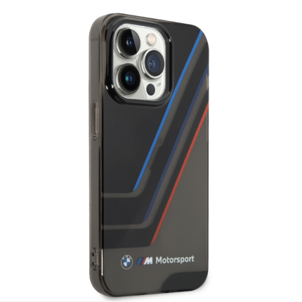BMW Motorsport Collection PC/TPU IM Printed Tricolor Stripes Translucent Zones For iPhone 14 Pro Max – Black