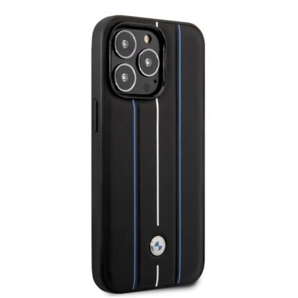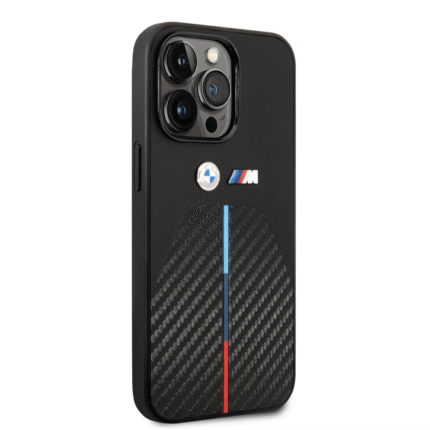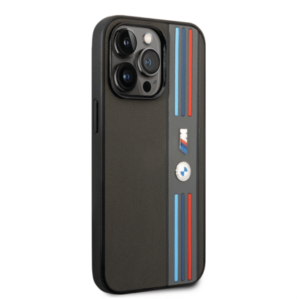 BMW M Collection PU Leather Case With Hot Stamped Tricolor Parts For iPhone 14 Pro Max – Black