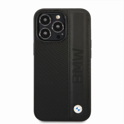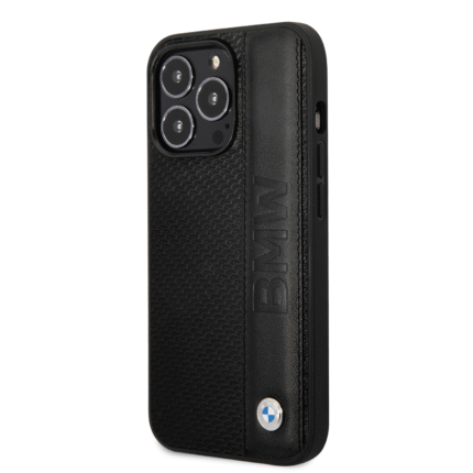 BMW M Collection Quilted PU Carbon Case With Hot Stamped Metal Logos For iPhone 14 Pro Max – Black