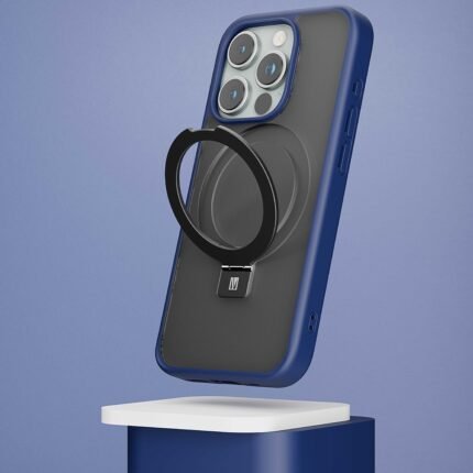 Levelo Verona PC + TPU MagSafe Kickstand Matte Case for iPhone 15 Pro Max Series Blue