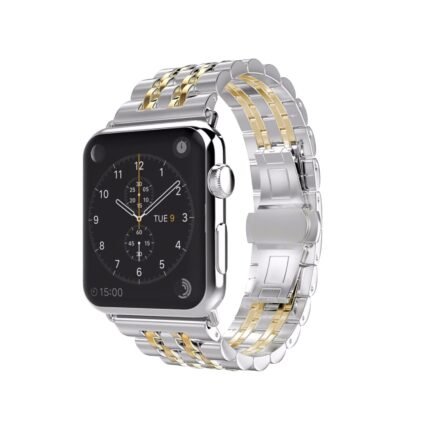 Apple Watch Stainless Steel Band 42/44/45 mm – Silver With Two Lines Gold