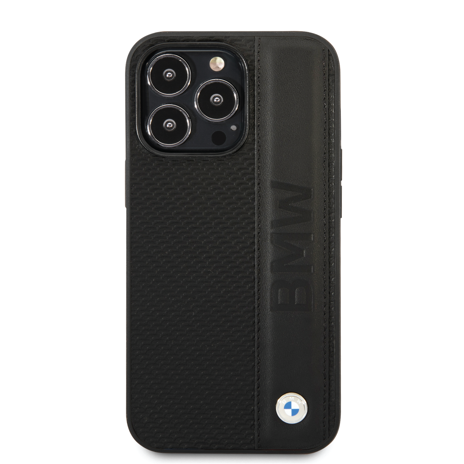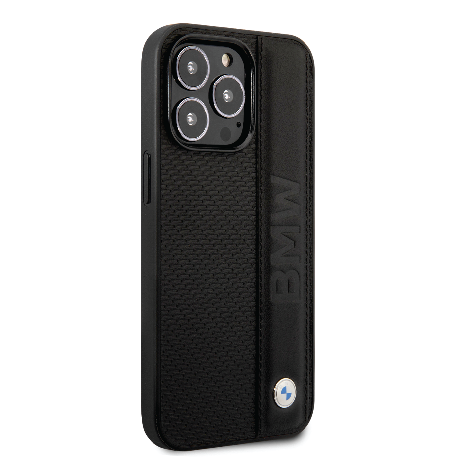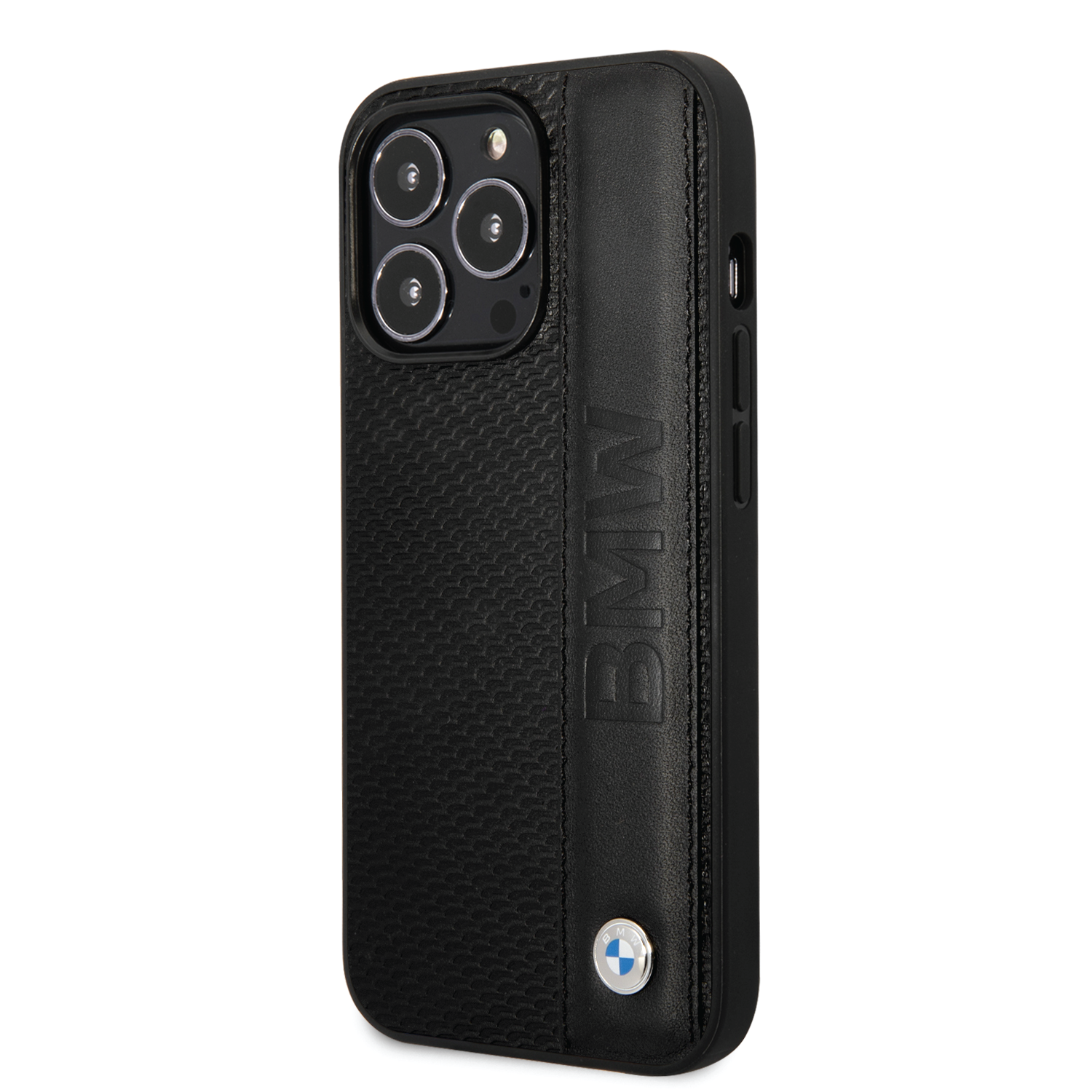BMW Signature Collection Genuine Leather Case With Textured & Big – Logo Stripe For iPhone 14 Pro Max Black