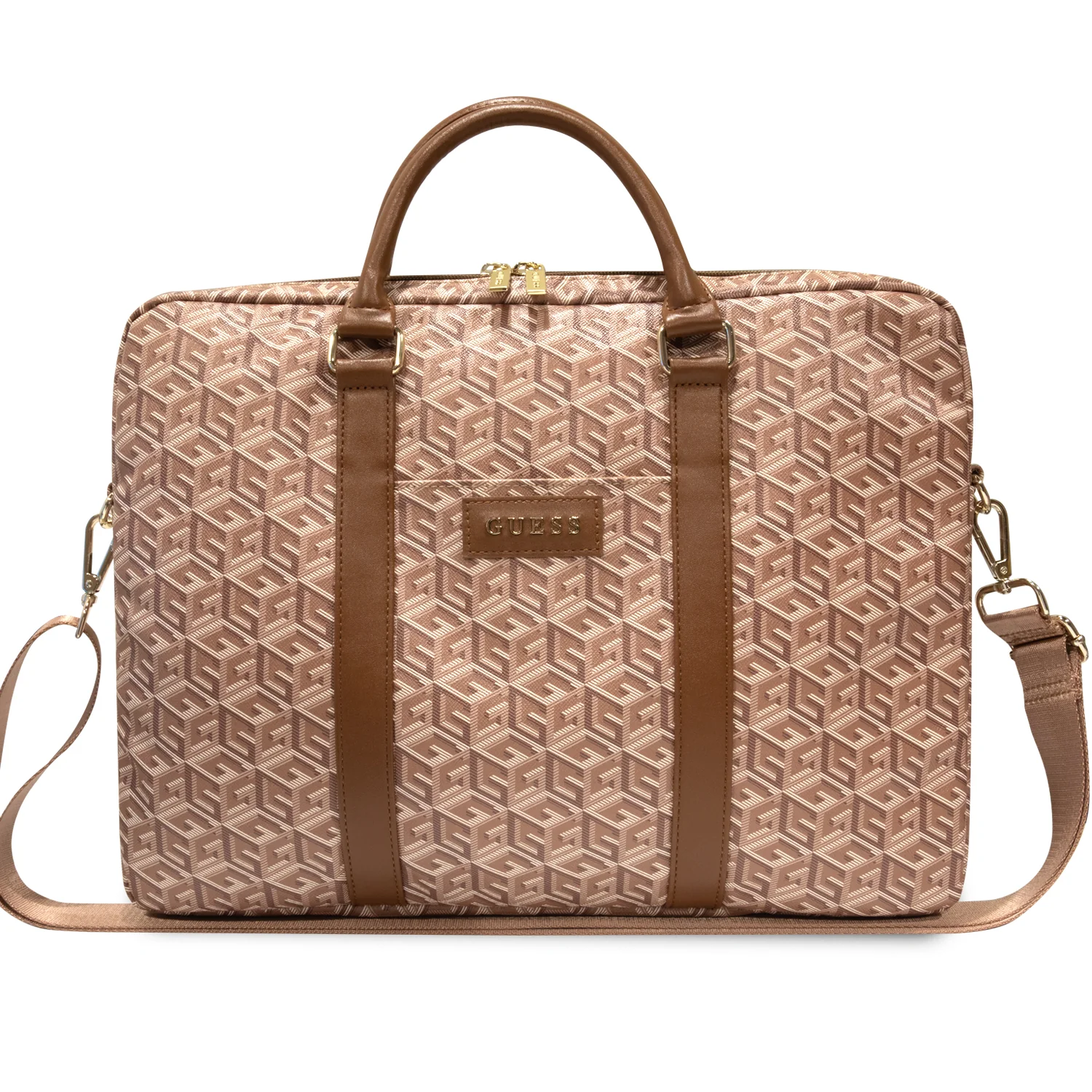 This G Cube computer bag from Guess is perfect for carrying your laptop up to 16″ and all your important documents. It features an avant-garde print from the latest G Cube collection. The case has storage space, two inside patch pockets and an outside compartment. It can be carried on the shoulder or by hand.