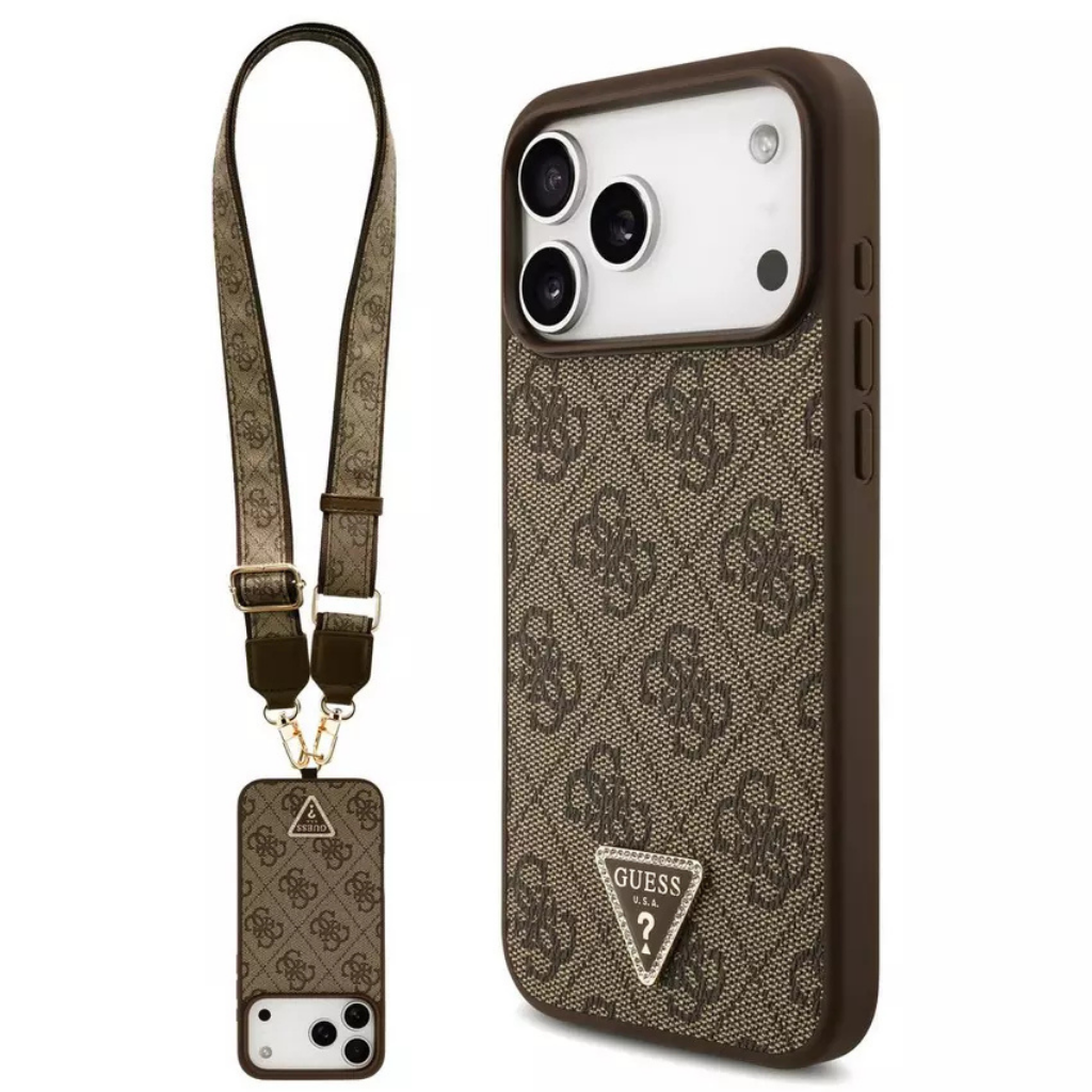 Guess MagSafe Case 4G Triangle Logo with Big Strap for iPhone 17 Pro Max – Brown