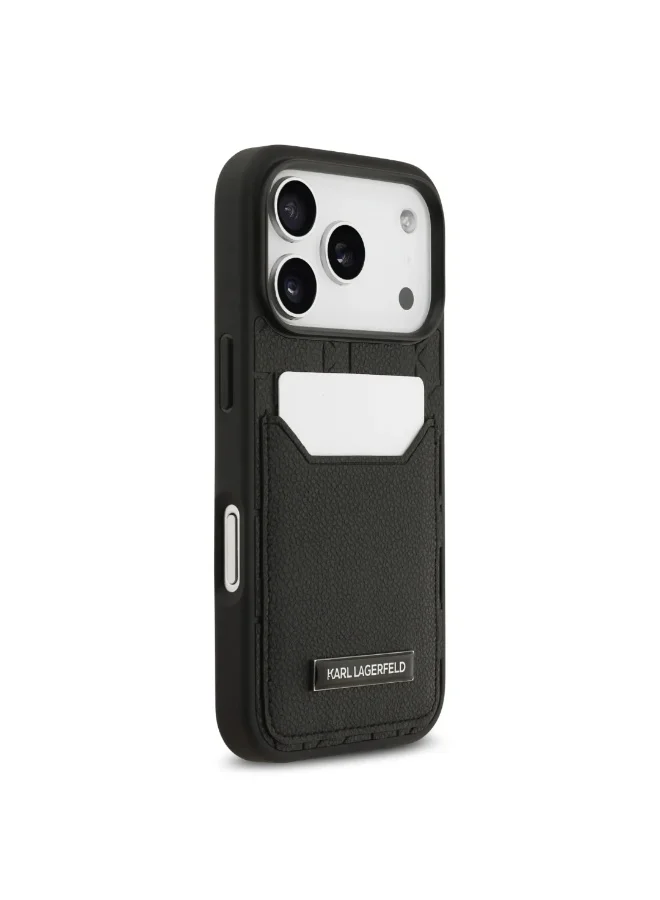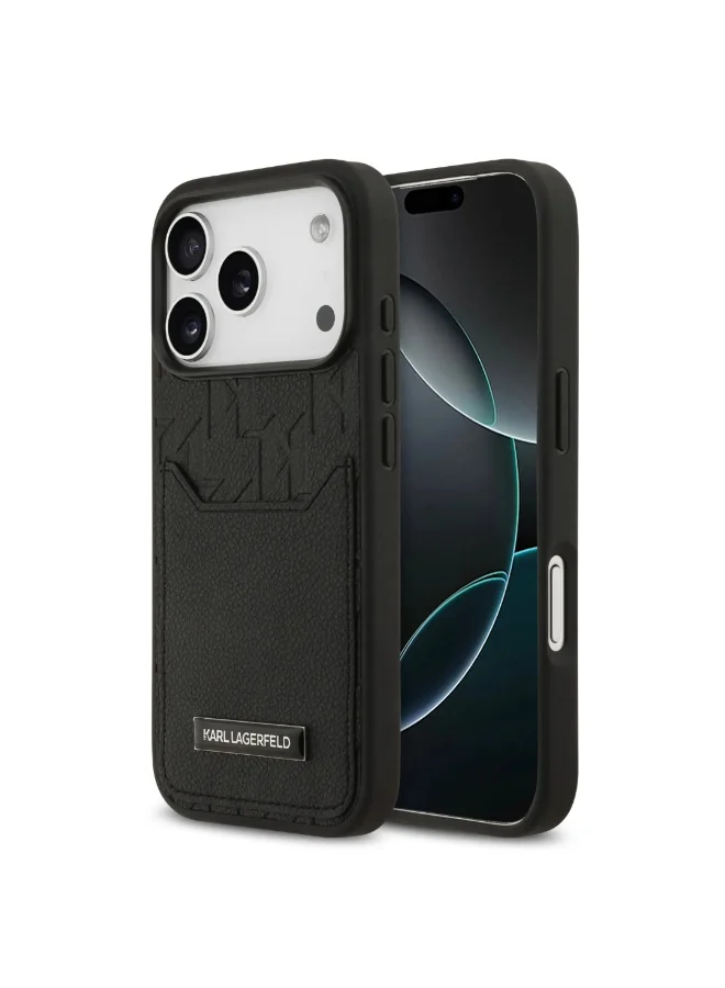 The Karl Lagerfeld PU Case for iPhone 17 Pro Max in Black offers premium protection with a sleek designer look. Made from durable PU leather with iconic Karl branding and a slim, stylish profile.
