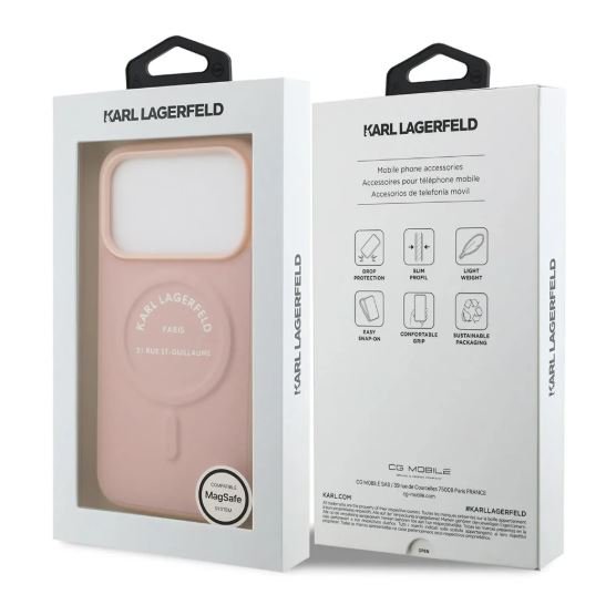 Give your iPhone 17 Pro Max a stylish designer upgrade with the Karl Lagerfeld MagSafe PU Case with RSG Logo Buttons – Pink. Designed for fashion lovers who appreciate elegance and protection, this premium case merges Karl Lagerfeld’s iconic aesthetic with modern smartphone functionality.