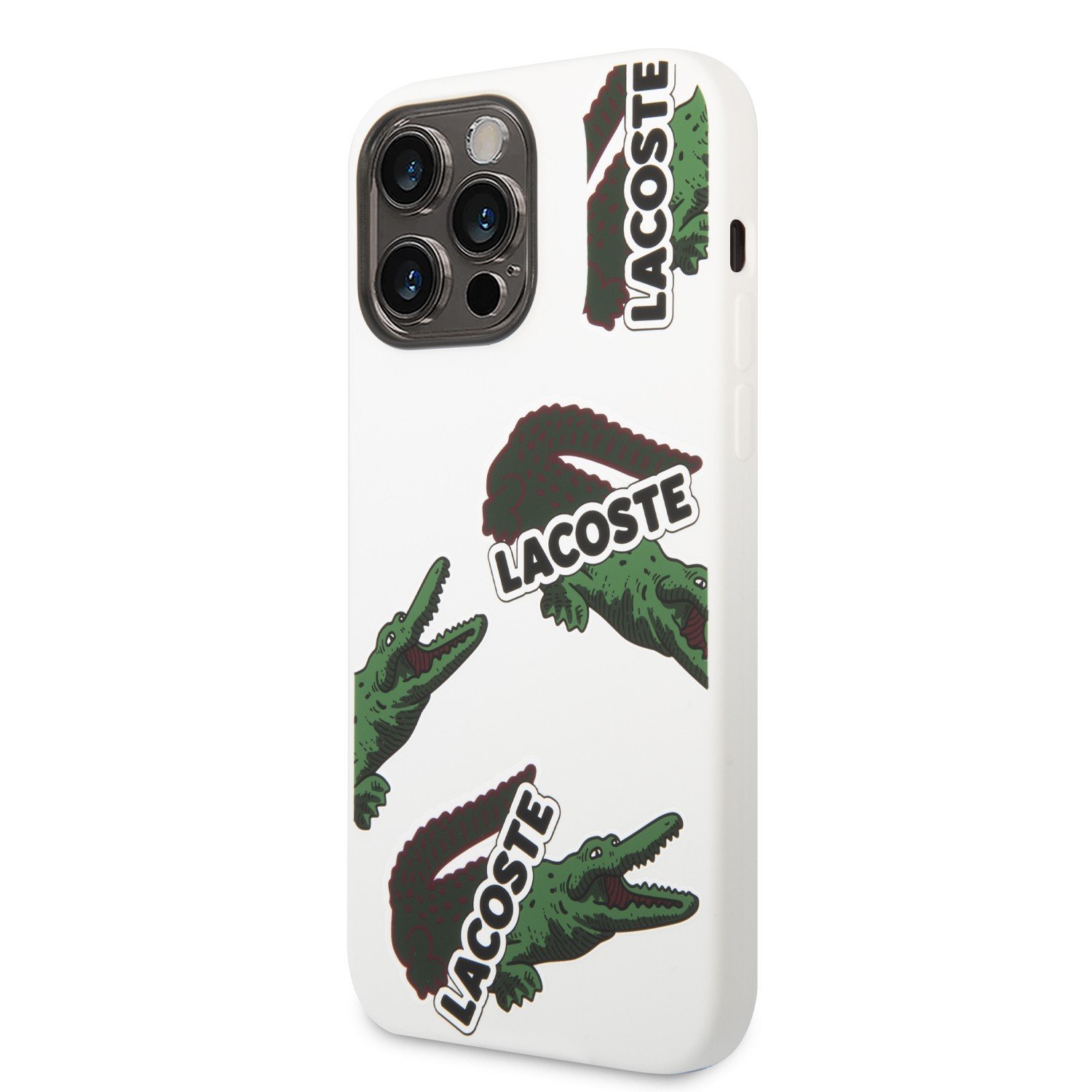 Lacoste Hard Case Liquid Silicone Microfiber Allover Pattern Compatible with iPhone 14 Pro Max-iPhone 15 Pro Max- White