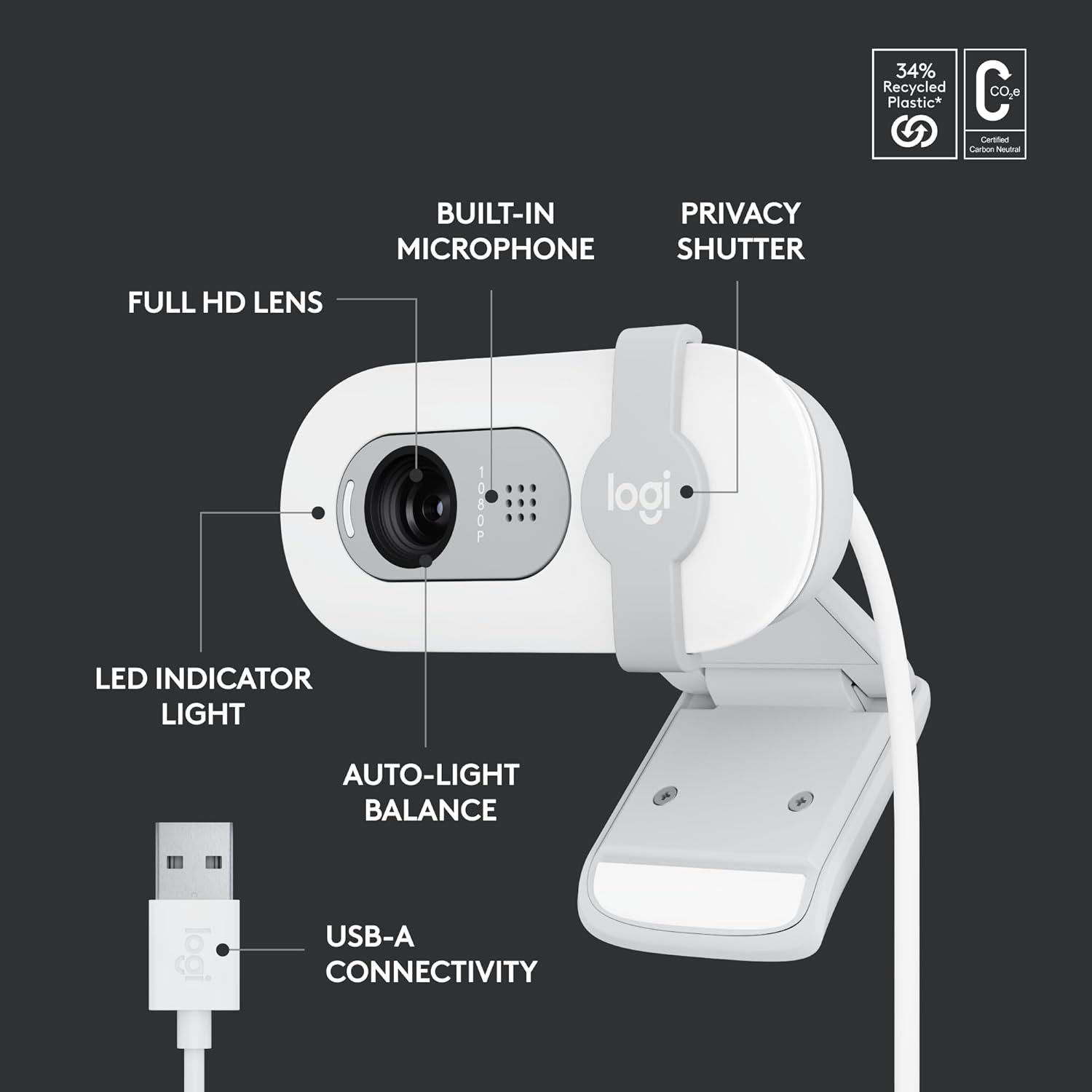 Logitech BRIO 100 Full HD 1080p Webcam With Auto-Light Balance, Integrated Privacy Shutter, and Built-In Mic – Off White (2 Years Warranty)