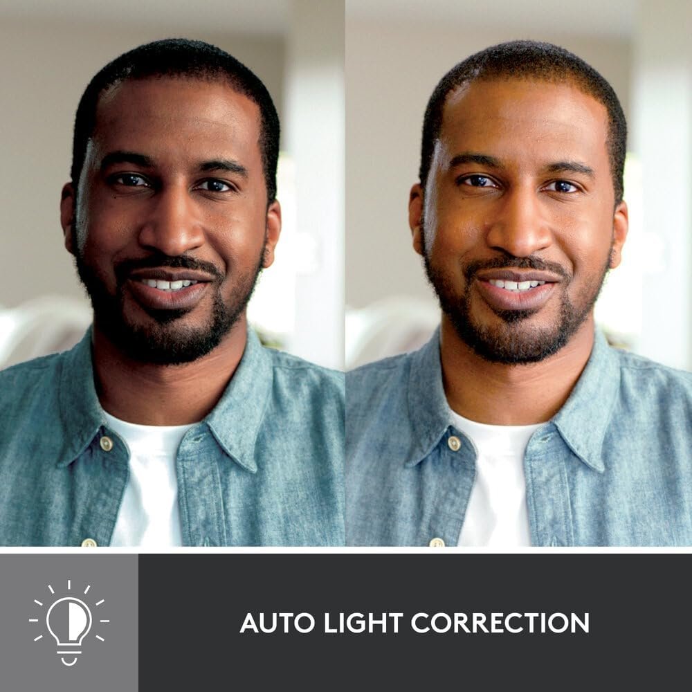 This webcam features intelligent auto light correction that balances brightness in real time. Therefore, it improves video quality in low or uneven lighting. In addition, it keeps your face well-lit throughout calls. As a result, your image always looks clear.