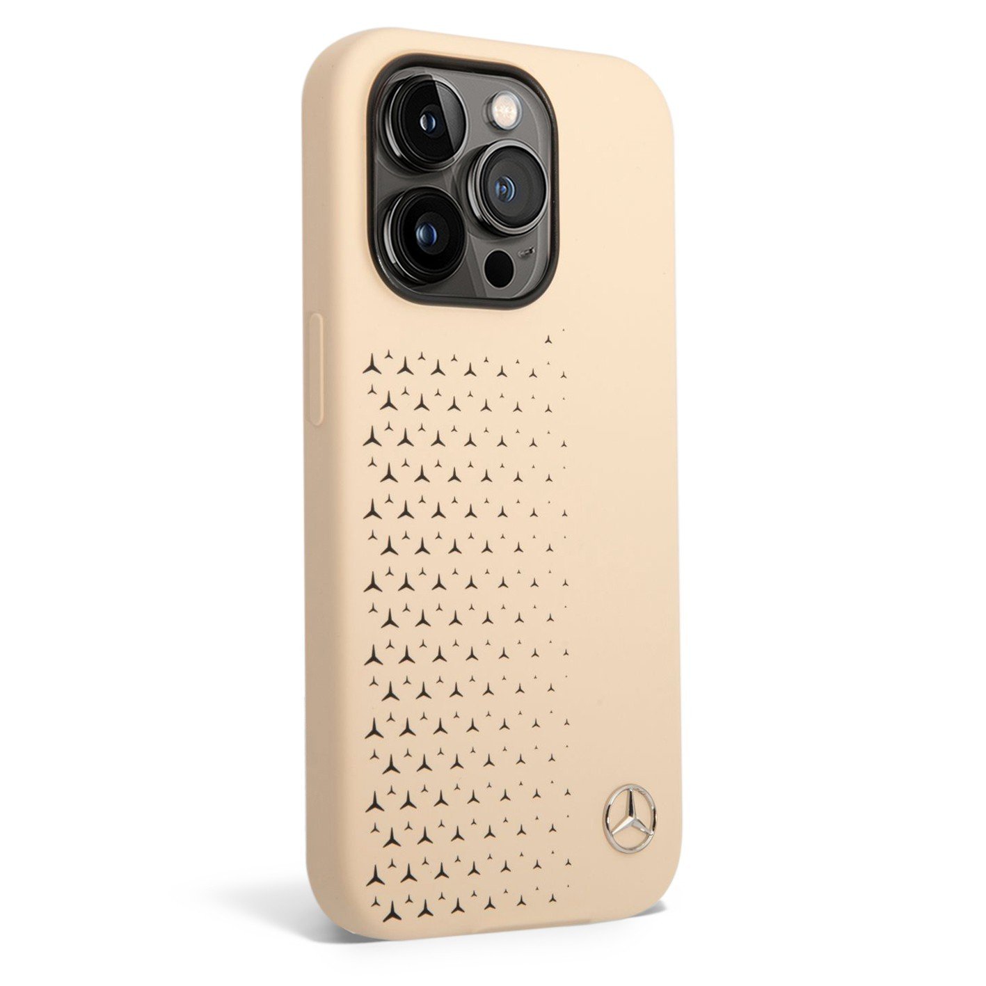 Mercedes-Benz Liquid Silicone Case With Gradient Star Horizontal Pattern For iPhone 14 Pro Max – Beige