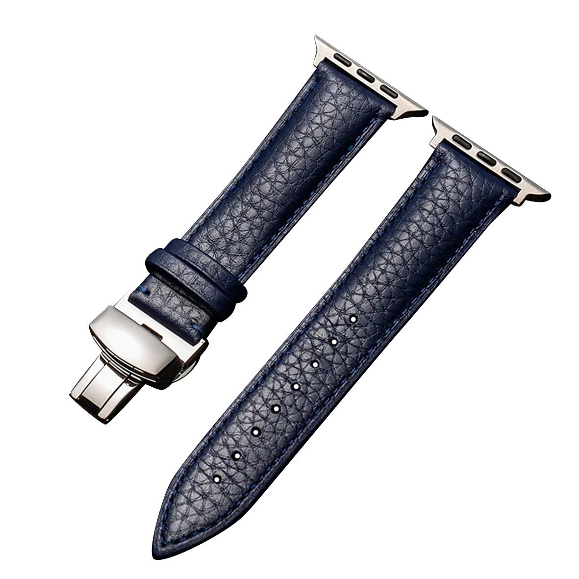 New Leather Band With Stainless Steel Butterfly Lock for Apple Watch 44/45mm – Navy