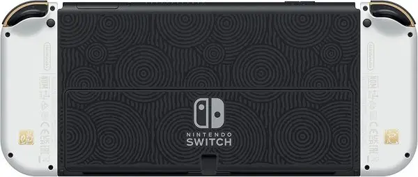 Nintendo Switch OLED Zelda Edition gaming console with 7-inch OLED display, enhanced audio, wide kickstand, and exclusive Zelda design.